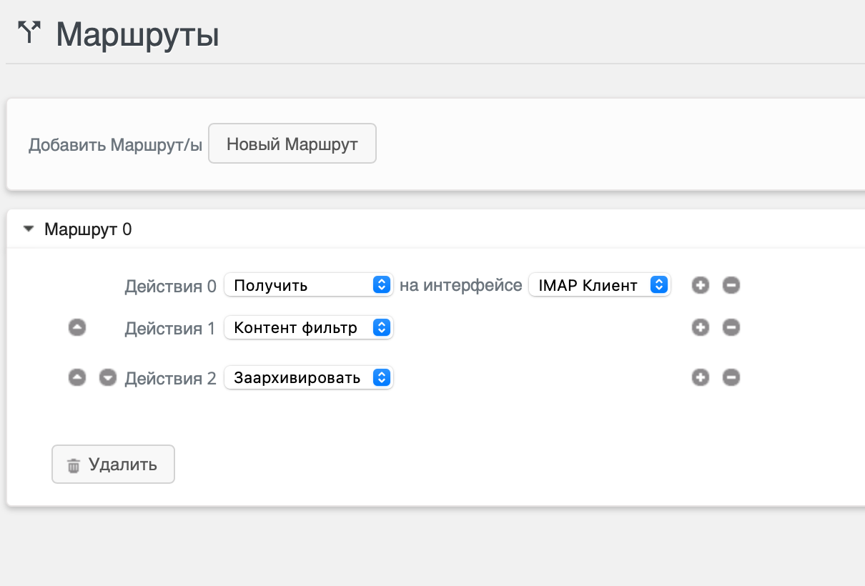 Использование фильтрации содержимого требует, чтобы пользовательская маршрутизация была указана в Настройка | Маршруты. Должен быть определен маршрут, включающий этап фильтрации содержимого (как на скриншоте ниже).