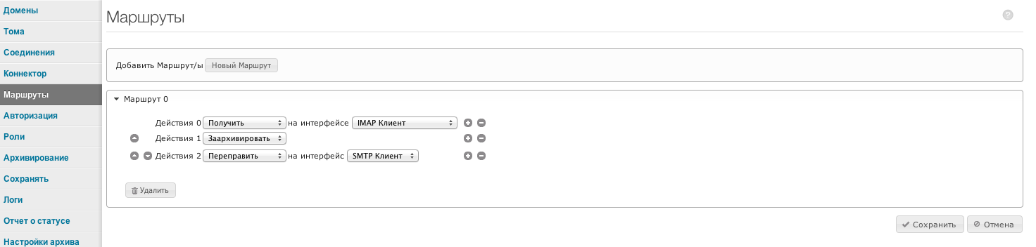 Конфигурация маршрутизации определяет, как АРХИВА обрабатывает входящий трафик. При отсутствии маршрутов АРХИВА автоматически архивирует все данные, поступающие с любого соединения. Обычно такое поведение является достаточным.