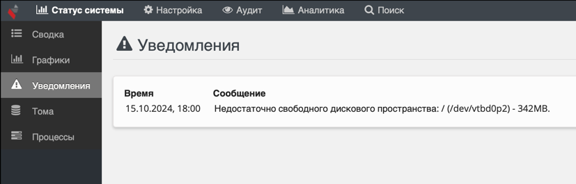 Предупреждения системы доступны во вкладке Статус системы -> Уведомления.